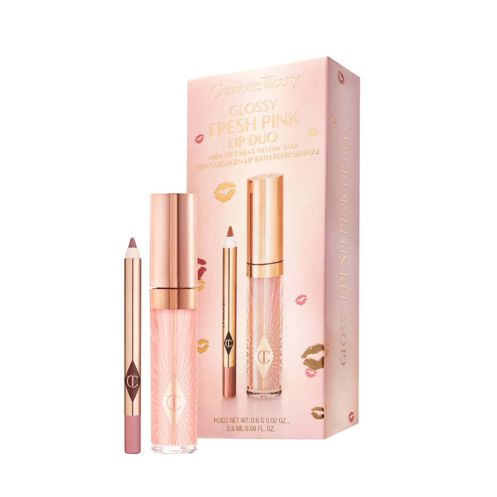 Qué es: Un delineador de labios Lip Cheat en miniatura icónico y un brillo de labios Collagen Lip Bath: la pareja perfecta para lograr labios contorneados y de aspecto más voluminoso con un acabado de alto brillo.