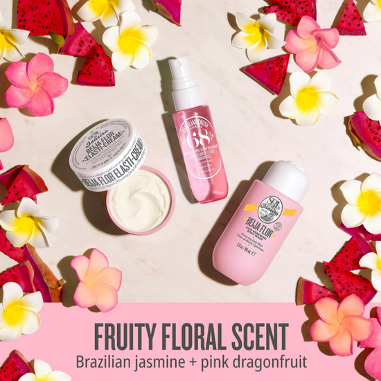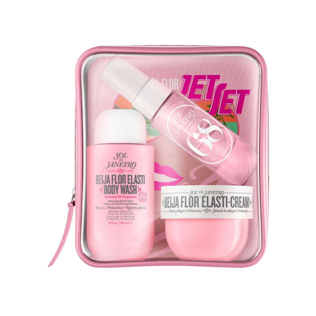 Lo que hace: Tu rutina para potenciar el colágeno. Mima tu piel con Beija Flor Renewing Body Wash, un limpiador cremoso con escualeno vegano. Masajea con Beija Flor Elasti-Cream, con aceite de cacay y colágeno vegano, para una piel tersa y elástica. Termina con el aroma floral y luminoso de la Bruma Perfumada Cheirosa 68.
